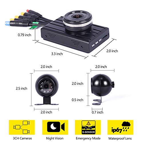 • Using the three-camera recording allows you to monitor all angles of your vehicle with this purchase.