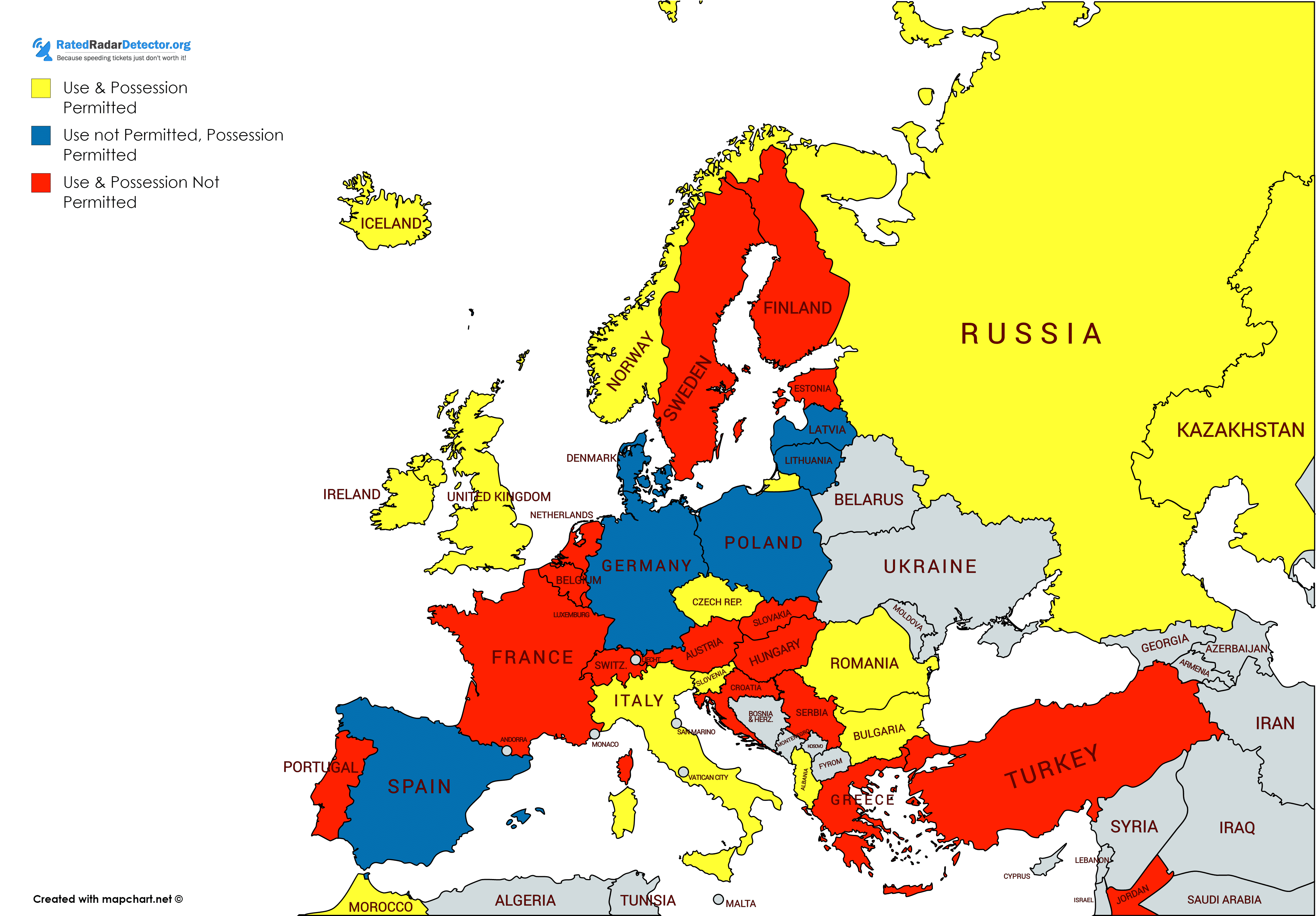 In Europe, the laws on the possession and use of radar detectors are different for each country. Some allow the possession of the gadget but not the use, and others completely forbid the ownership of the device.